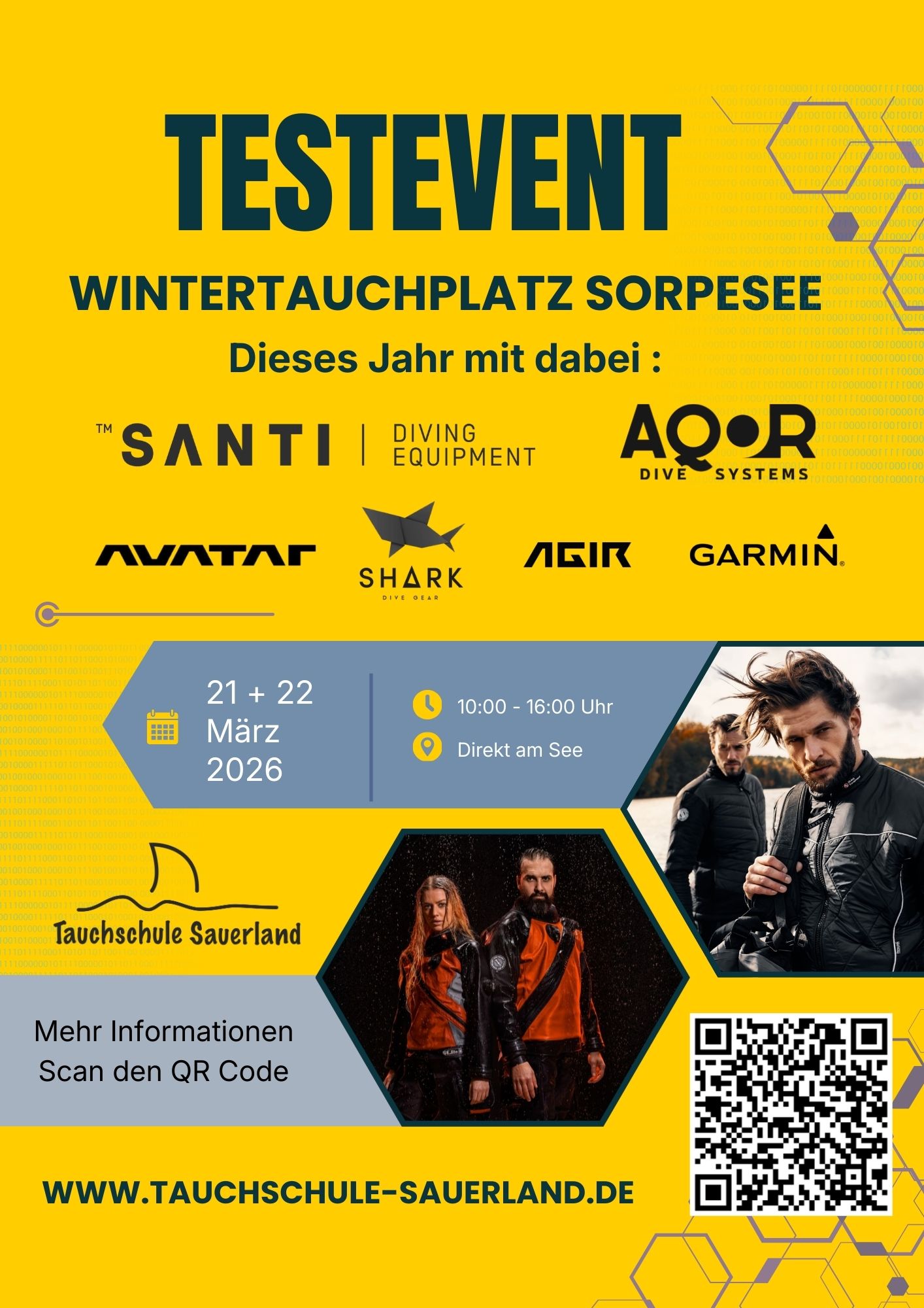 | 21. & 22. 03.2026 | 10:00 - 17:00 | Tauchschule Sauerland Wintertauchplatz Am Sorpesee 181 59846 Sundern |